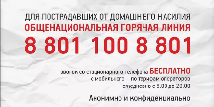 Всероссийский бесплатный телефон доверия для женщин, подвергшихся домашнему насилию |