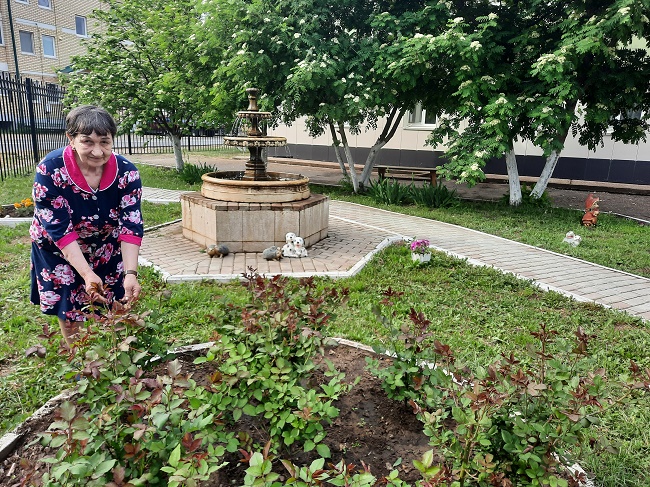 Пожилым людям не приходится скучать, в весеннее - летний сезон они трудятся на территории интерната. Проживающие помогают ухаживать за клумбами, высаживают деревья, приводят в порядок территорию дома – интерната. Активными участниками реализуемой технологии «Трудотерапия» являются получатели социальных услуг - Николай Матвеевич Волков, Ирина Георгиевна Меховникова, Меркулов Георгий Степанович. Ведь труд человека испокон веков пользовался почетом и уважением. Благодаря разработанной технологии «Трудотерапия» удается помочь больным людям вернуться к нормальной жизни, восстановить навыки физического труда, снять чувство беспокойства и напряженности.